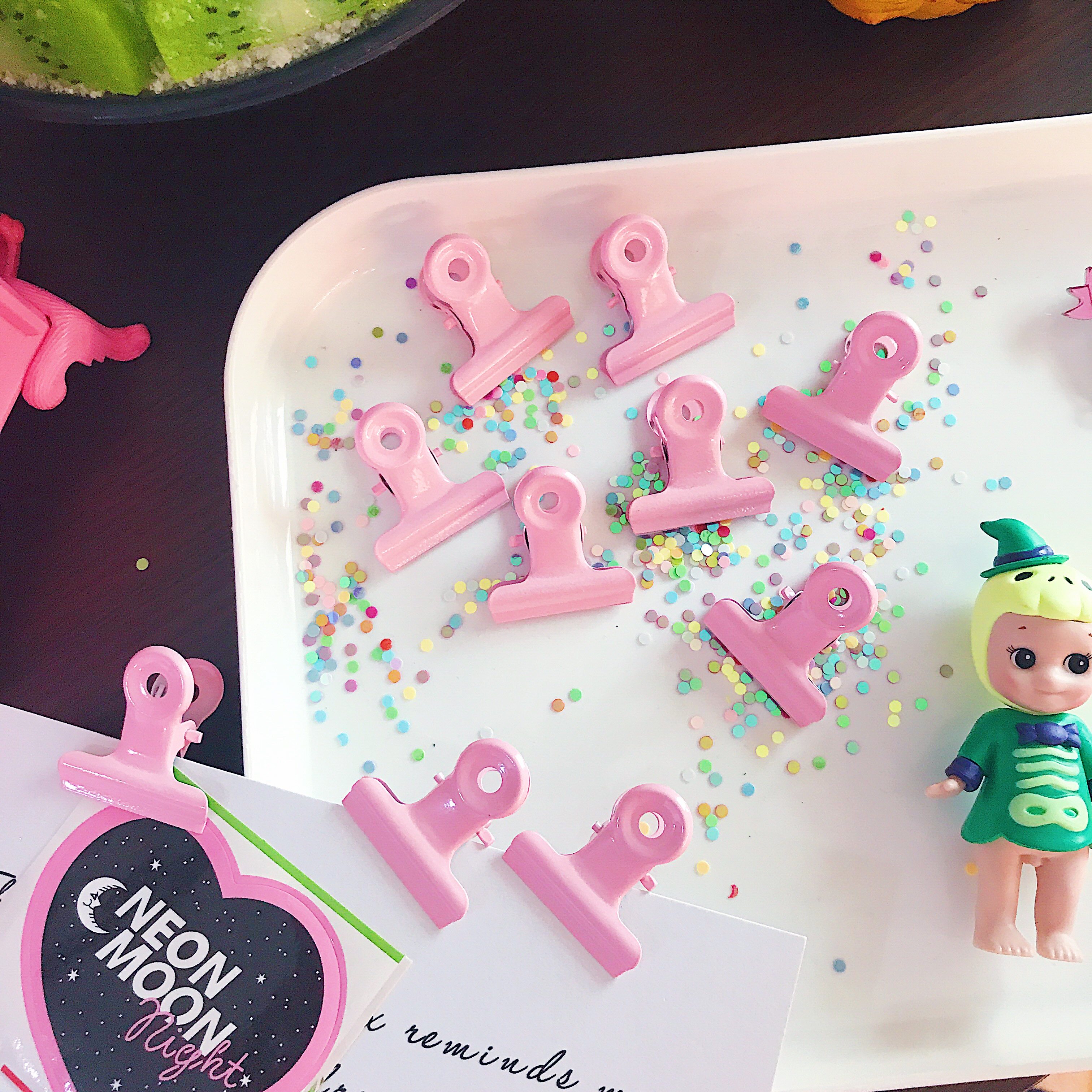 Korean girl pink Harajuku mini file storage clip Sealing clip Post-it note iron clip round tail ticket clip Student