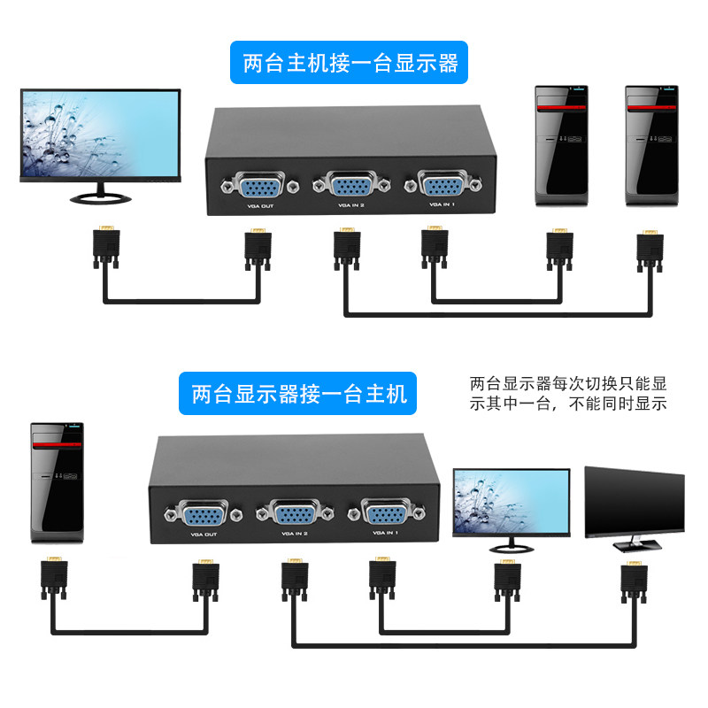 VGA switcher two in one out computer monitor converter HD multi-video surveillance sharing 2 in 1 out