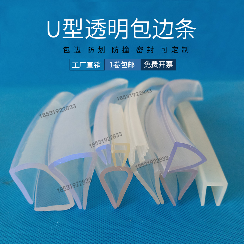 Transparent edging strip rubber edging PVC slot molding glass stainless steel protective sealing strip U-shaped rubber strip