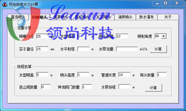 Hydraulic calculation software Lswater music fountain design Pump flow head selection reference Lingshang Technology