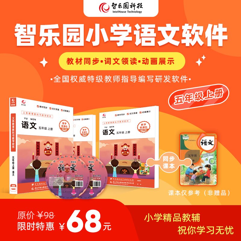 Zhiyuan People's Education Department edited primary school Chinese teaching resource package fifth grade first volume synchronous teaching software CD