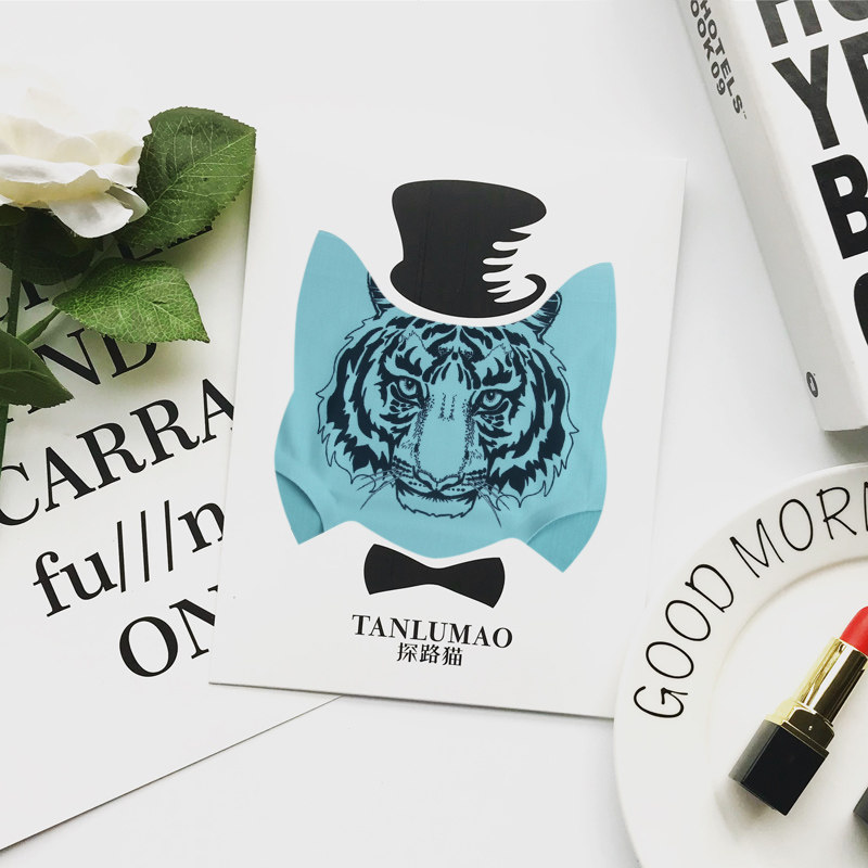 Path cat blue - gray tiger head illustration comfortable cotton crotch cute girl ice wire a trace underwear woman