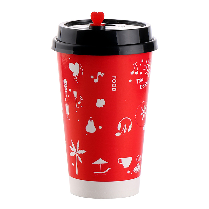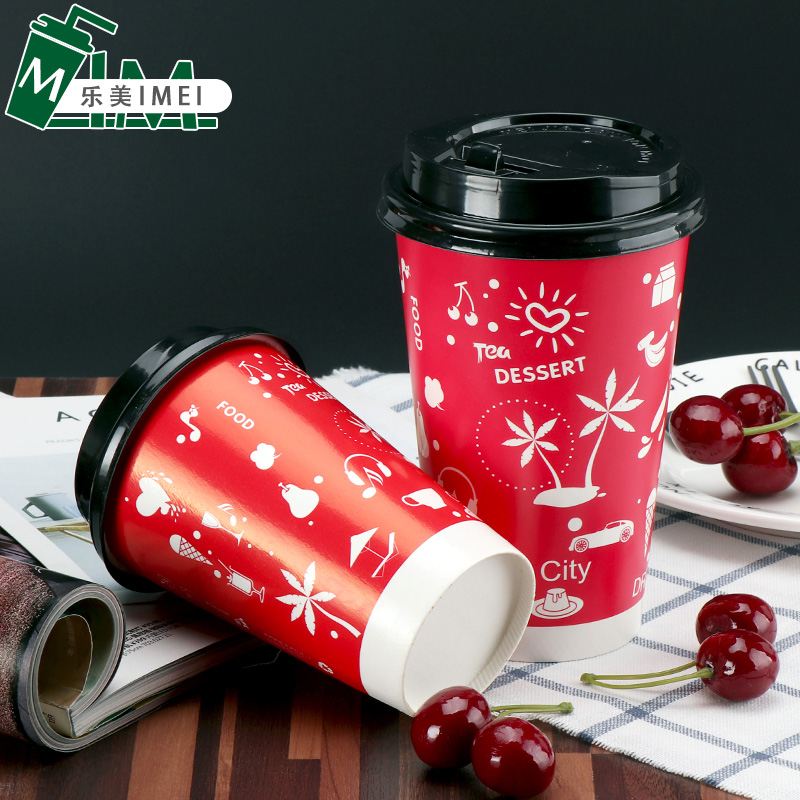 New year red thick disposable milk tea cup paper cup coffee cup with lid send soymilk Cup 1000 custom