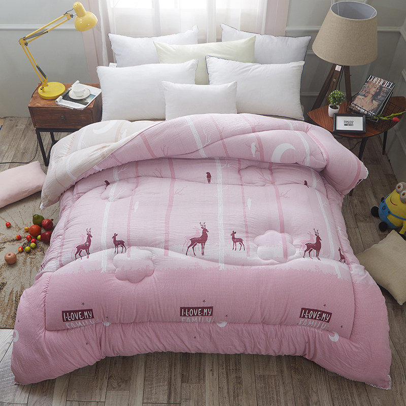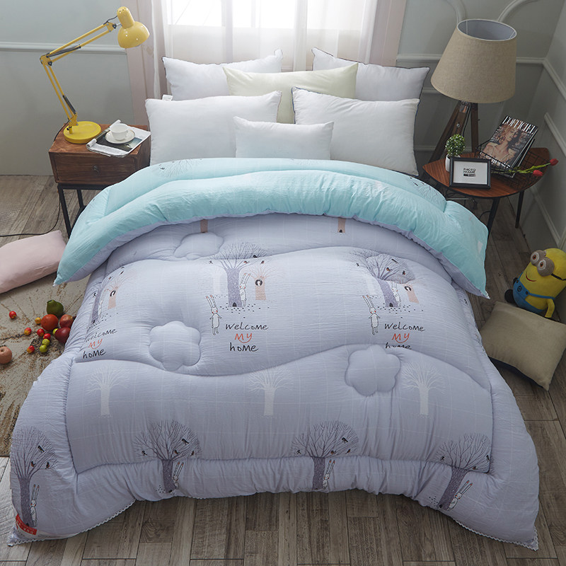 Washed cotton winter quilted by pure cotton print thickened warm quilt with core quilted machine wash single double student dormitory Spring and autumn quilt