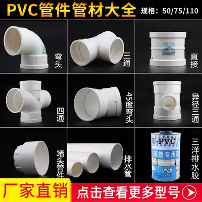 pvc drainage pipe fitting 50 75 110 90 degree 45 degree reducing elbow tee tee four-way direct blocking plug