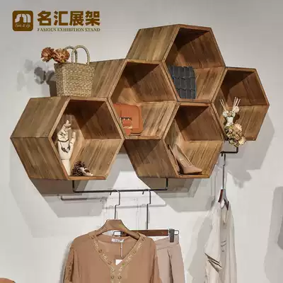 Women's wall-mounted shoe rack Clothing store decoration rack Retro hanger display rack on the front side of the wall hanging rack bag rack