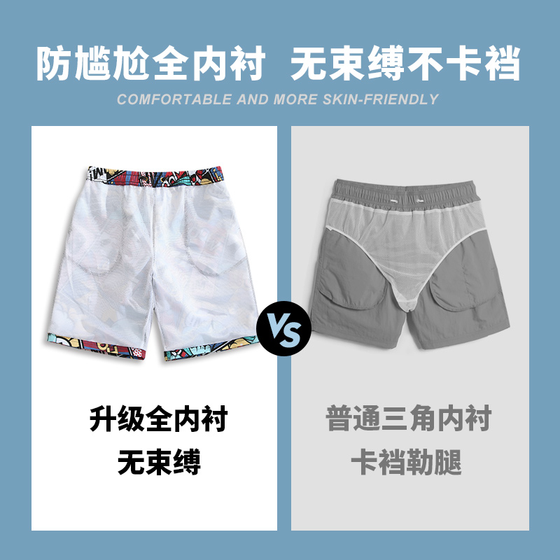 Beach pants men's quick-drying can go to the seaside vacation plus size swimsuit swimming trunks hot spring loose five-point lined shorts