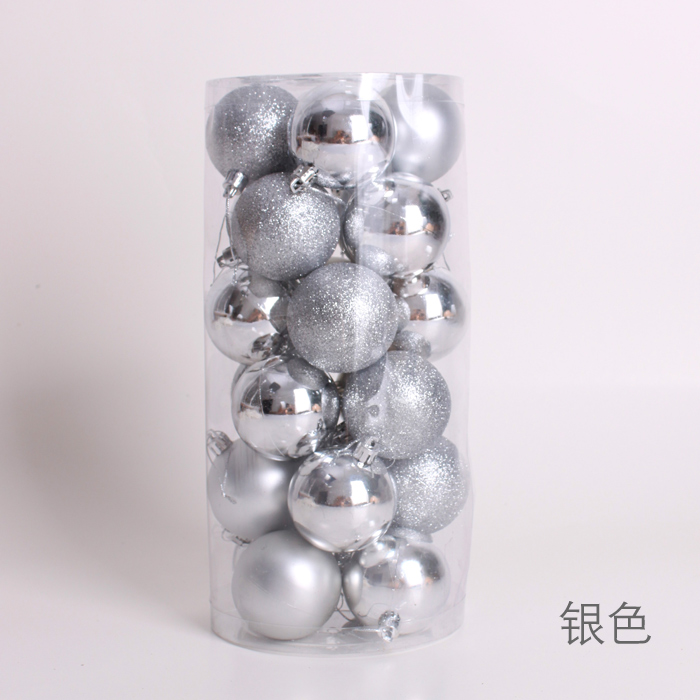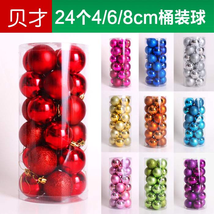 Pei Cai Christmas Color ball Electroplated bright light ball 24 pieces of shopping mall window Festive scene decoration Christmas Tree ball