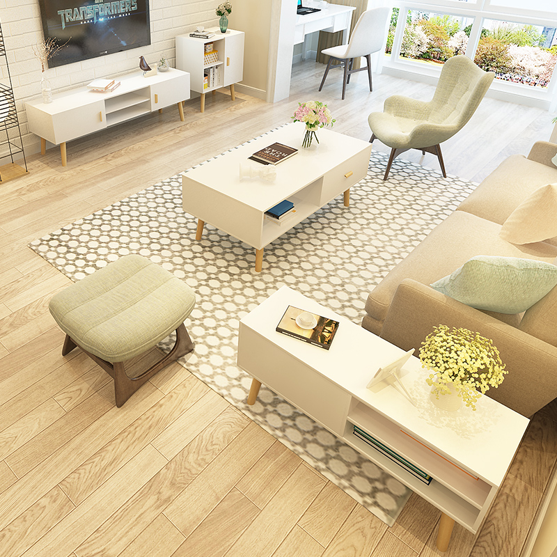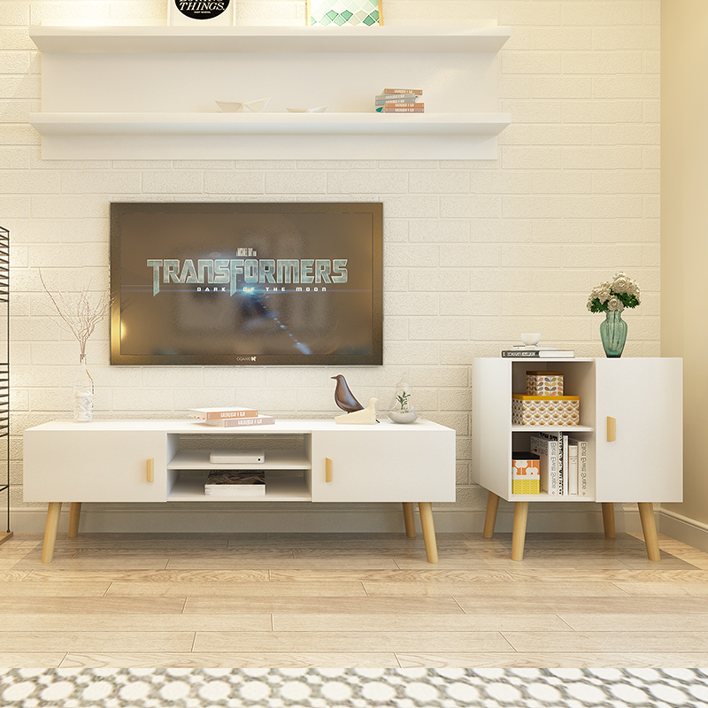 Nordic solid wood TV cabinet tea table combination suit white modern minimalist creative tea table small family type day tea table