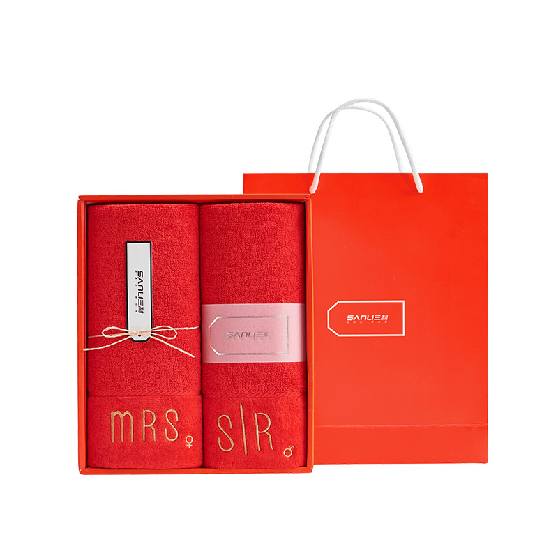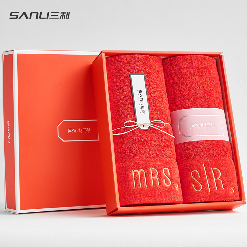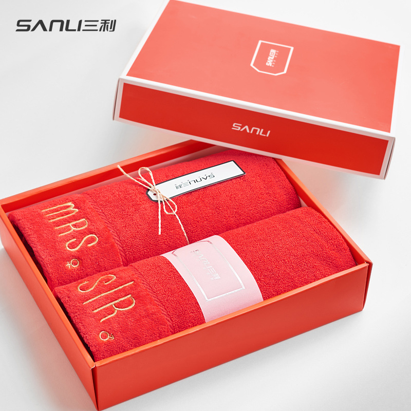 Sanli Happy Lover Red Towel Gift Box Wedding Bachelor Bath Wedding Towels Set Pure Cotton Cotton Couple Household