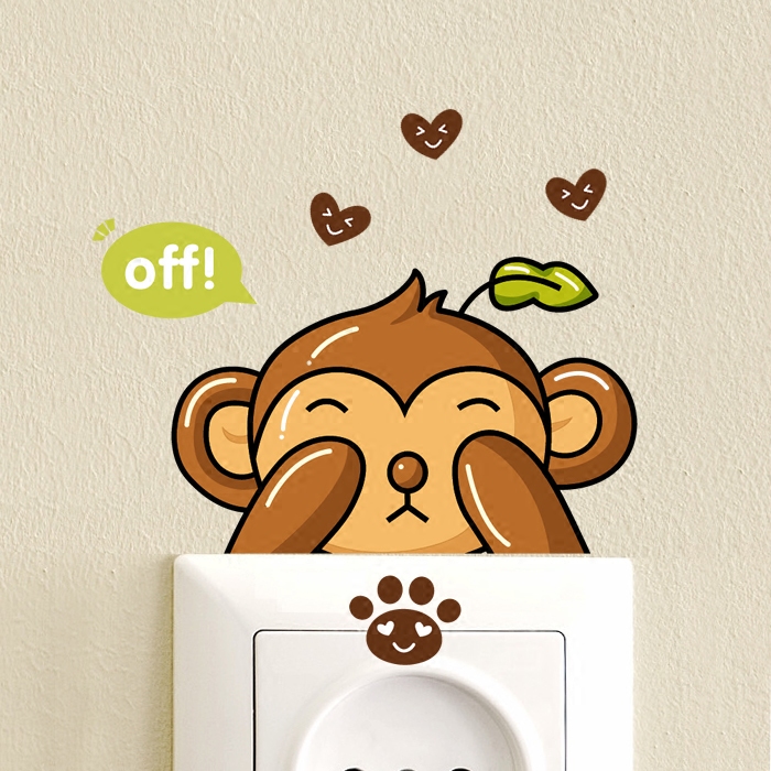 Switch Sticker Small Animal Living Room Bedroom Dorm Room Dorm Room Creative Cartoon Animal with hand Off lamp wall Decorative Painting