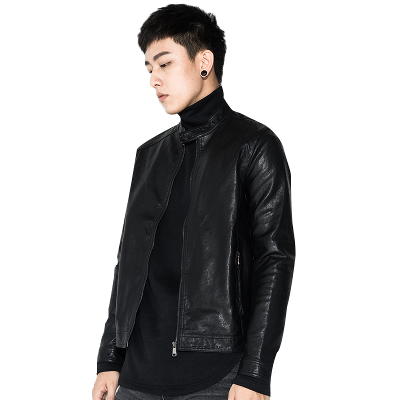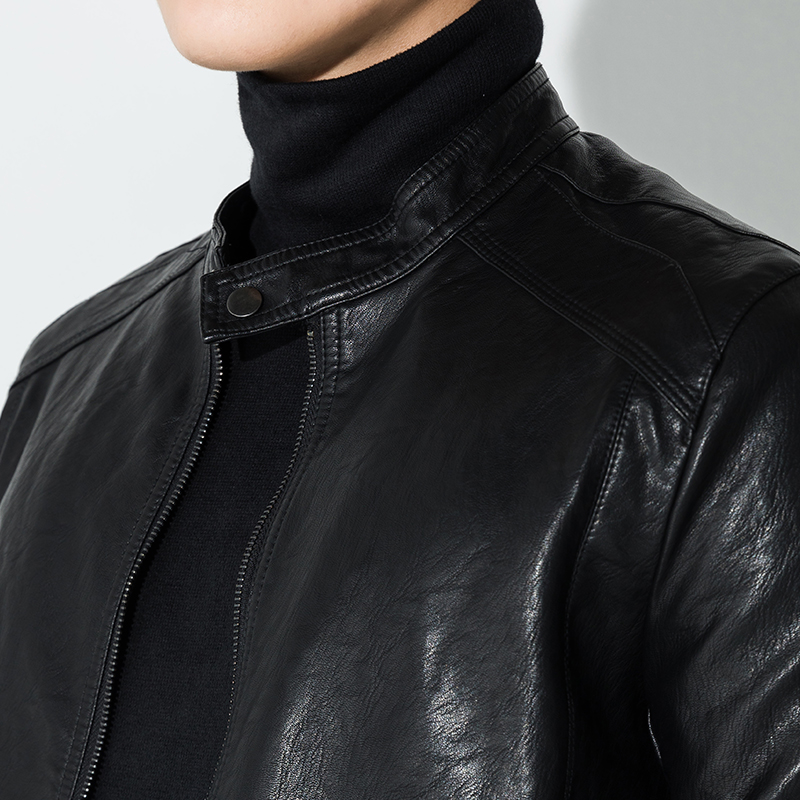 Black selection for men's leather jacket short leather jacket sashimi blouses young men's jacket pu leather locomotive clothing wave