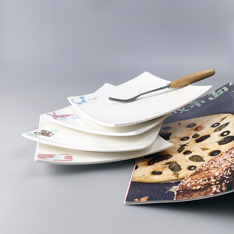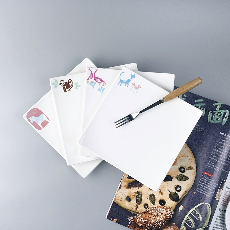 Eurostyle Creative Ceramic Dishes Square Pan Breakfast Dish Western Dining Trays Steak Pan Pan Cartoon Dessert Cake Pastry Pan-Taobao