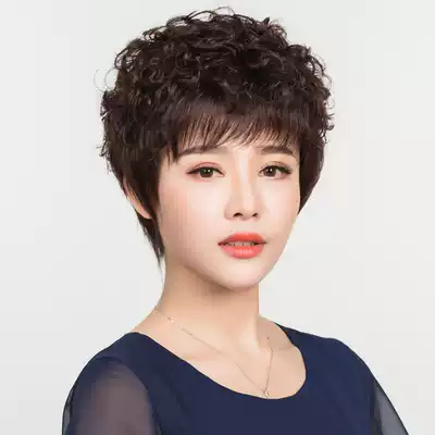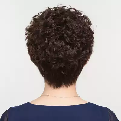 A flower real hair wig short curly hair wool roll mother short hair real hair silk middle-aged headgear natural and realistic