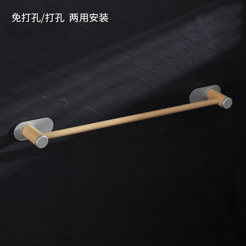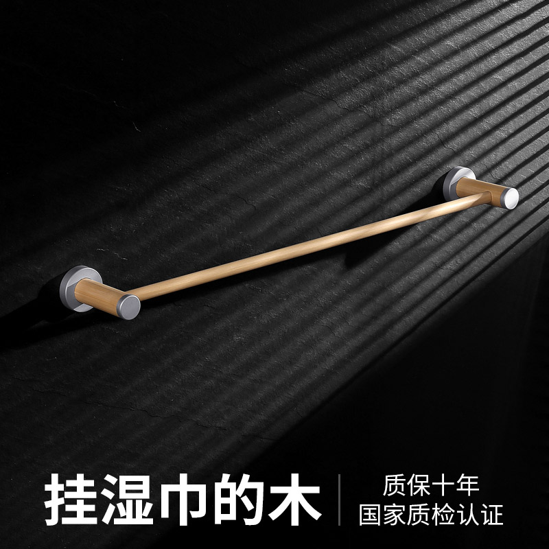 Towel bar single rod dressing room towel storage shelf light luxury bathroom hanging rod wooden homestay rack hardware pendant