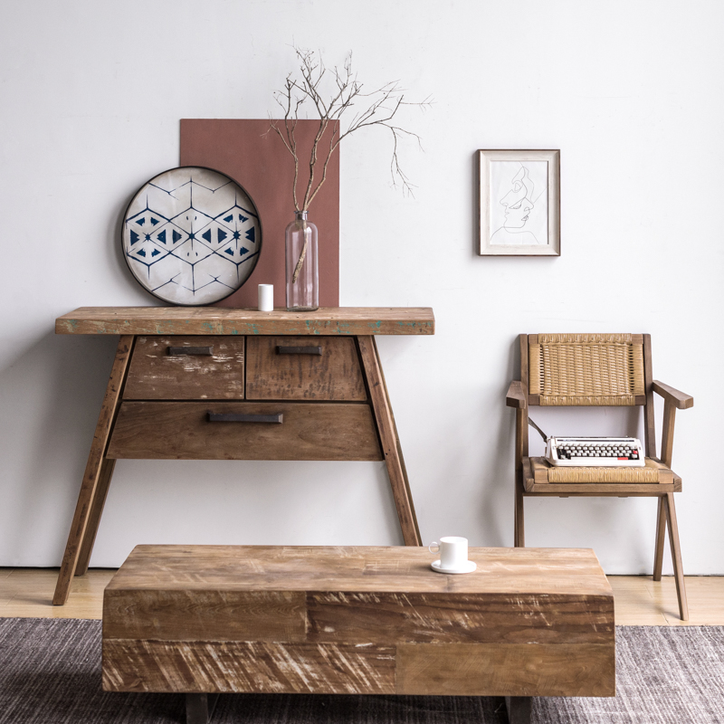 Imported solid wood porch table old teak furniture retro industrial style porch counter aisle decoration against the wall case
