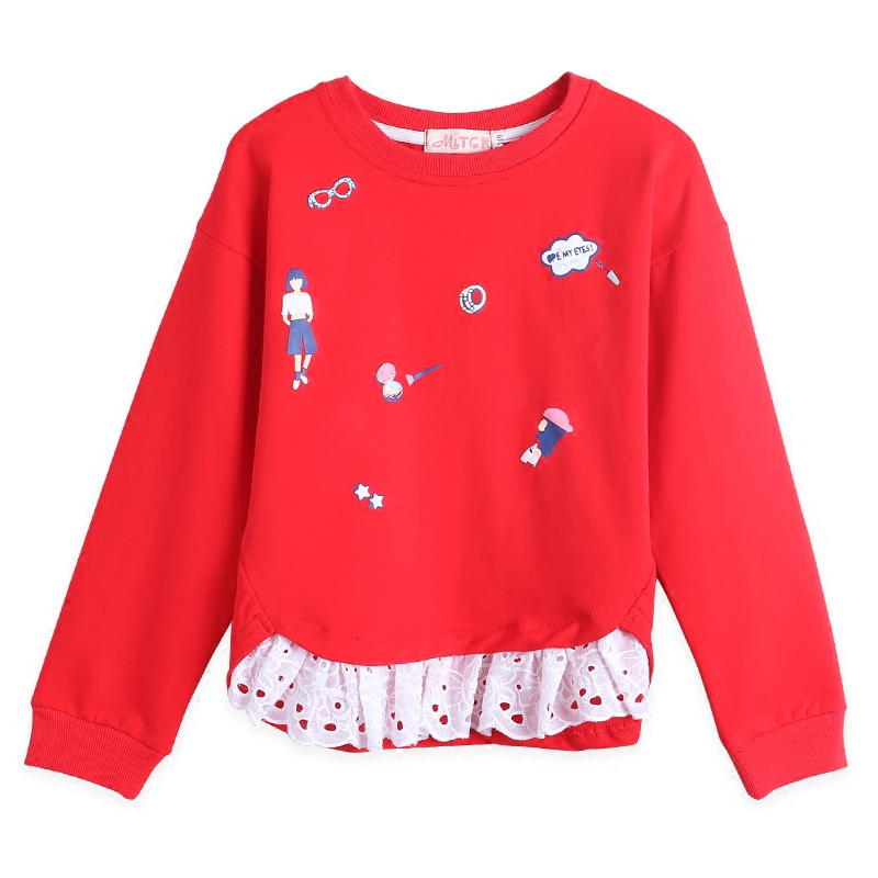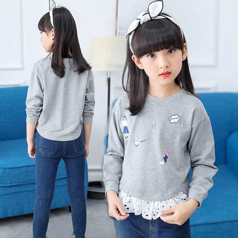 Children's clothing girls' thick T-shirt middle-aged children's bottoming shirt 2022 new children's long-sleeved lace T-shirt spring and autumn pullover top