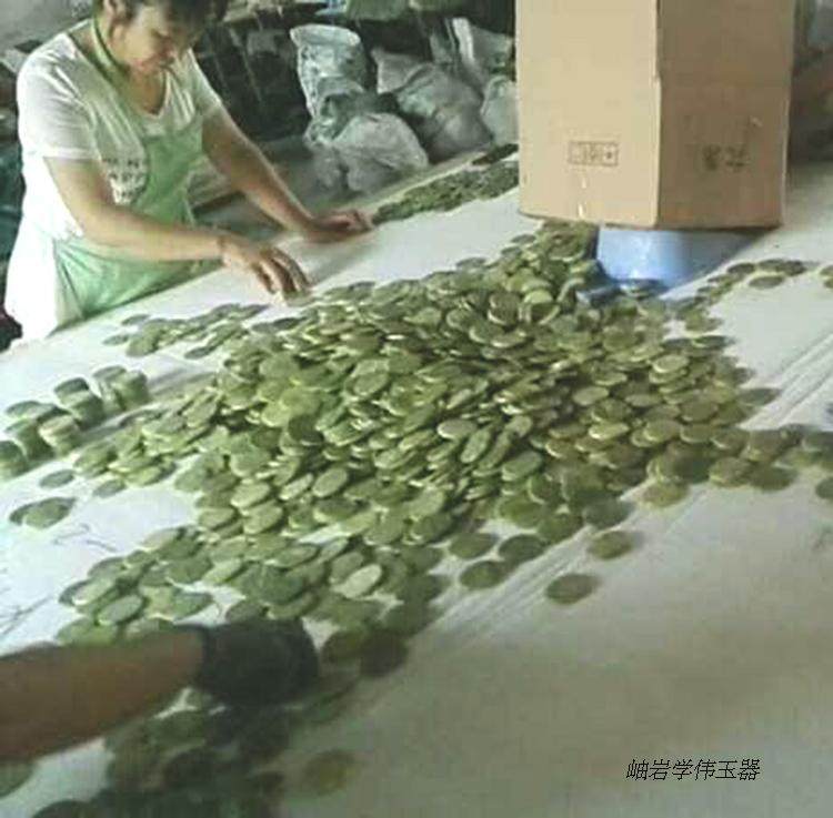 Dandong green wafer jade diameter 5 cm polished jade wafer jade mattress cushion with jade sheet jade plate