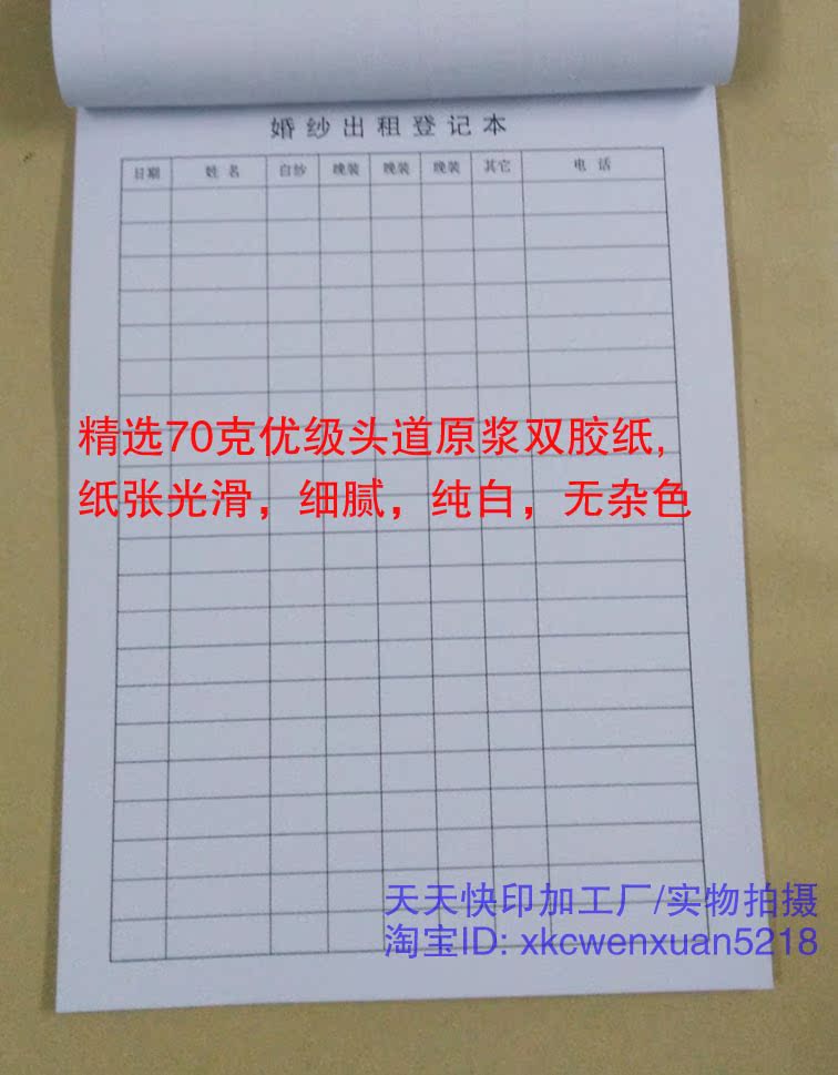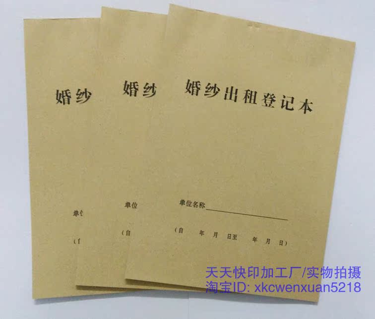 The registration book for the rental of the wedding dress