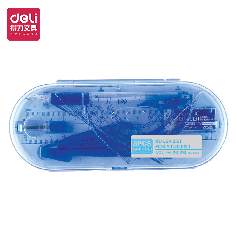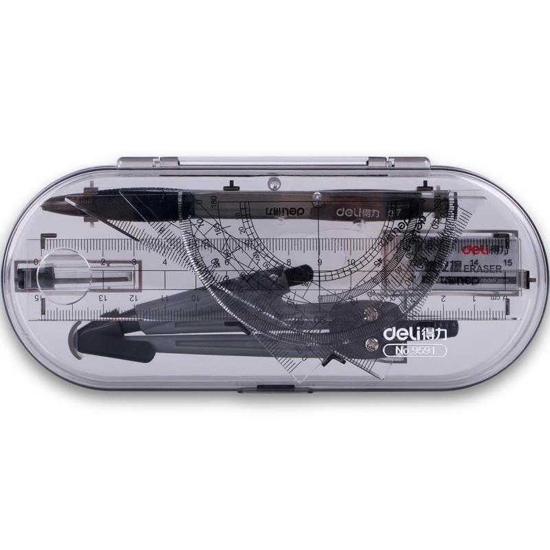 Able 9591 Triangle ruler Student Drawing suit 8 pieces of sets compasses Compass Gauge Suit Students stationery cover Tianjin
