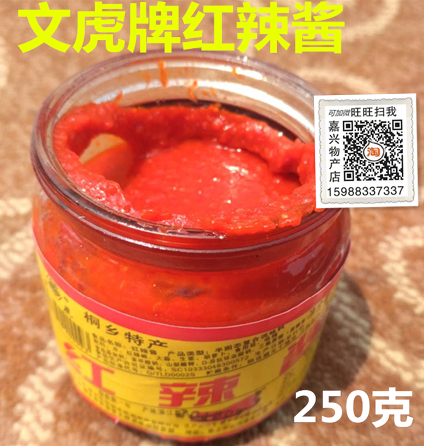 Tongxiang Wenhu Red Hot Sauce Bottled Chili Sauce 250g Price Shaomai Fried Dumpling Companion Shoot 3 Bottles of Jiangsu, Zhejiang, Shanghai and Anhui
