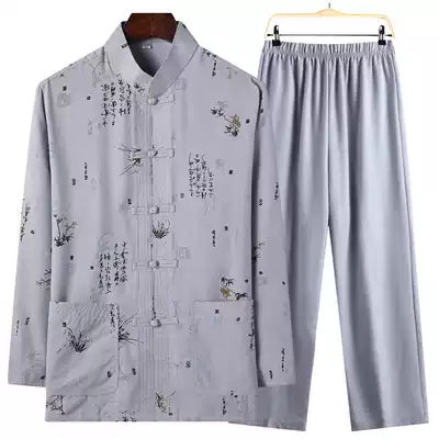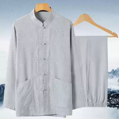 Spring and autumn cotton and linen Tang clothing men's long-sleeved suit Elderly Hanfu dad summer clothing Grandpa lay clothes elderly clothes men