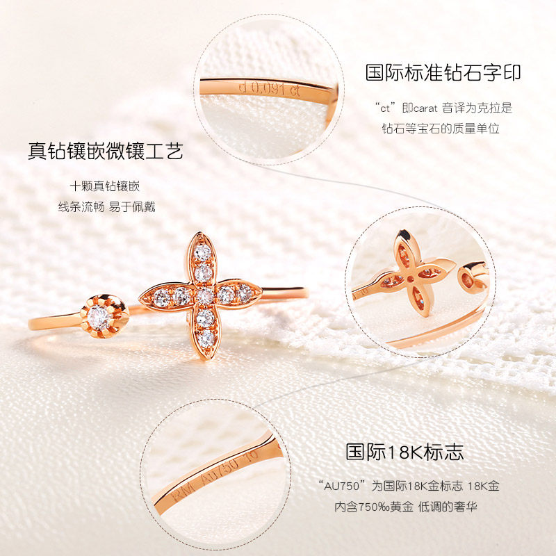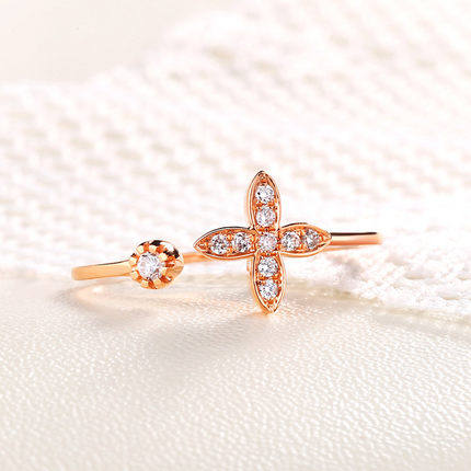 Four Leaf Grass 18k Gold Diamond Ring Female Fashion Personality Rose Gold Index Finger Opening Tail Ring Color Golden Couple Pair Ring