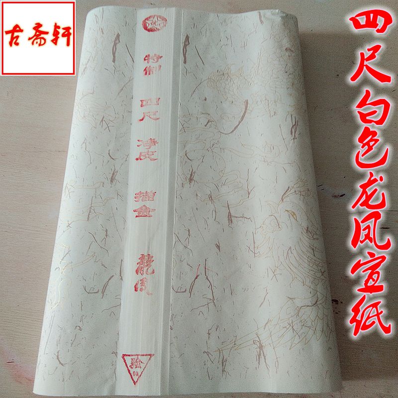 Rice Paper Four feet Buddhist Yellow Gold Dragon and Phoenix Xuan Buddhist Huang Sheng Rice Paper Calligraphy Creation Rice Paper