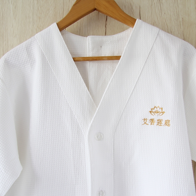 Heyi moxibustion clothing Pure cotton waffle grid before and after opening straight through cotton moxibustion physiotherapy clothing massage massage custom logo