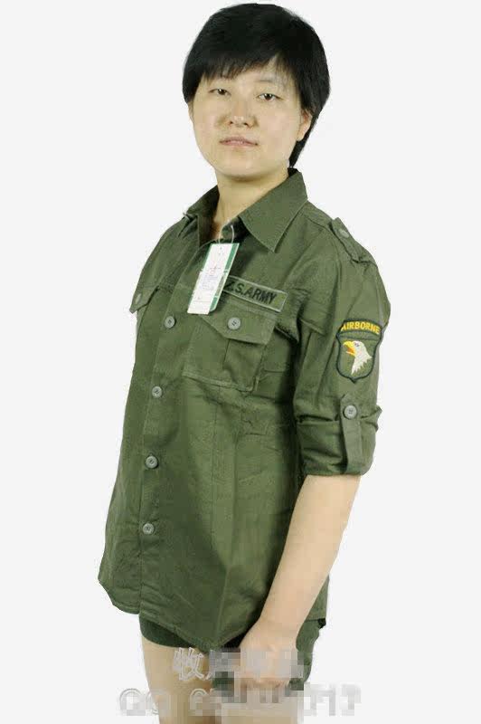 Army fan long-sleeved shirt women's spring and Autumn outdoor cotton lapel epaulette slim shirt Army green frock top women