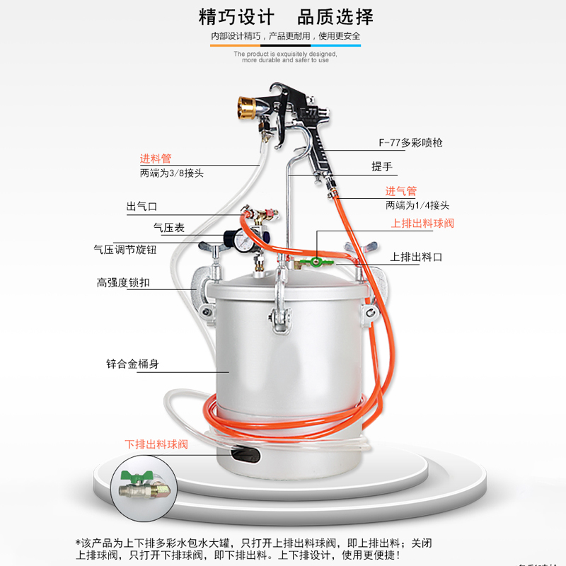 Lower discharge water storage pressure bucket colorful water-in-water 10 liters 15 liters lower discharge paint latex paint paint imitation stone paint spray gun