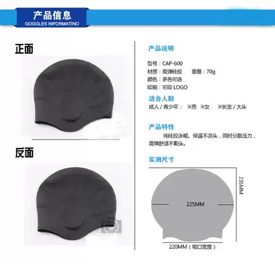 Solid color ear protection silicone swimming cap increased elasticity pure silicone big head quality swimming cap for men and women
