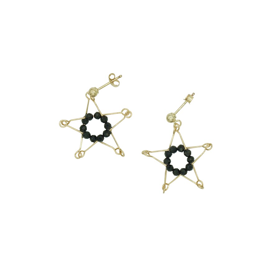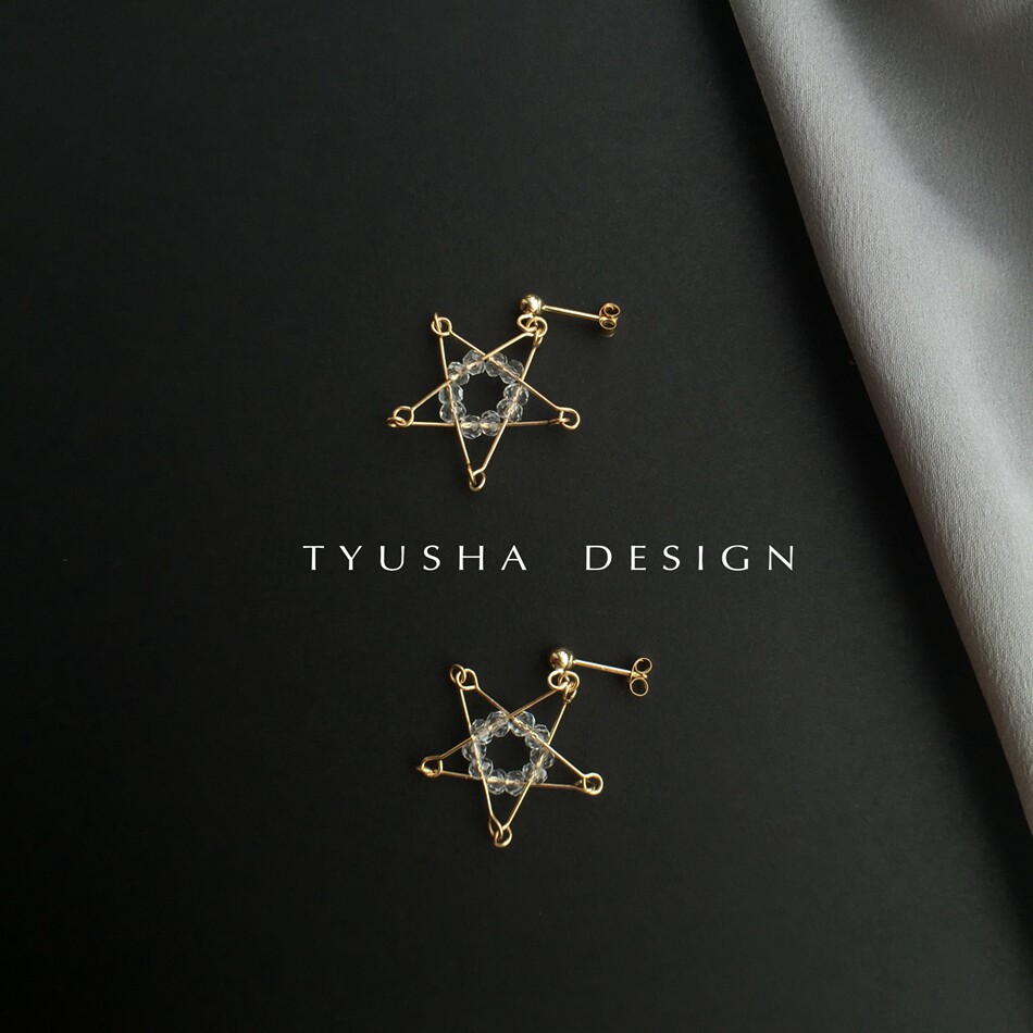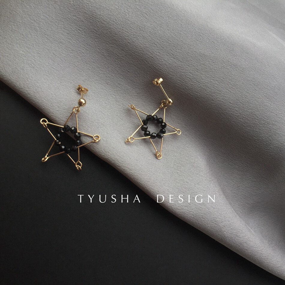 TYUSHA Stars Control 14K Note Gold Baukin Natural Black Tip Crystal White Crystal Pentagram Earrings Earrings Super Ocean-Taobao