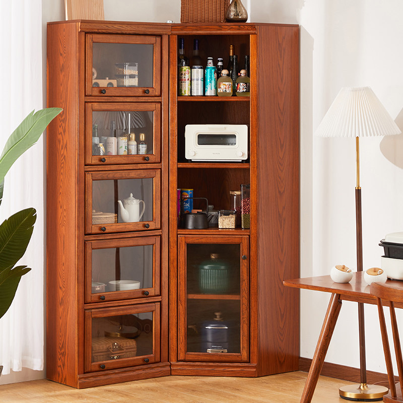 Corner bookcase bookshelf solid wood American floor-to-ceiling glass door living room with door dustproof one whole wall home display cabinet
