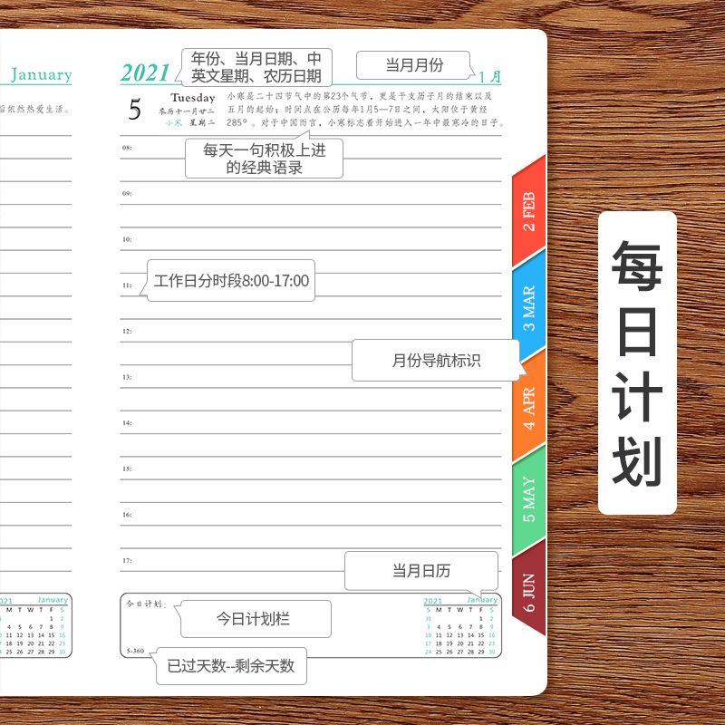 2021 Calendar This plan This diary 365 days custom notebook Sub-calendar notepad Daily punch-in Self-discipline table Time management Week work learning efficiency manual Hand account book