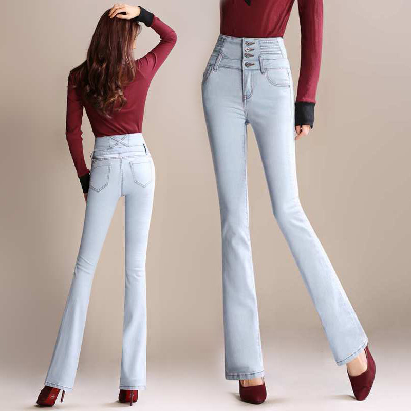 Summer thin section High waist micro-laps Jeans Women Long Pants Elastic Personality glutes Hip Large Size Lady Horn Pants