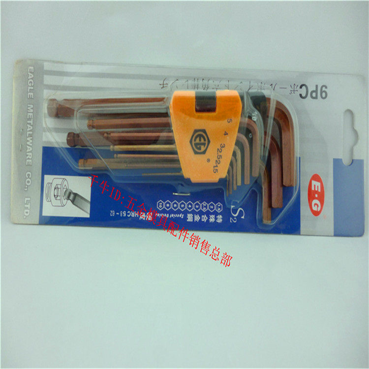 S2 lengthened flat head ball head plum flower type Mix inner hexagon wrench 9 pieces of hexagonal screwdriver set
