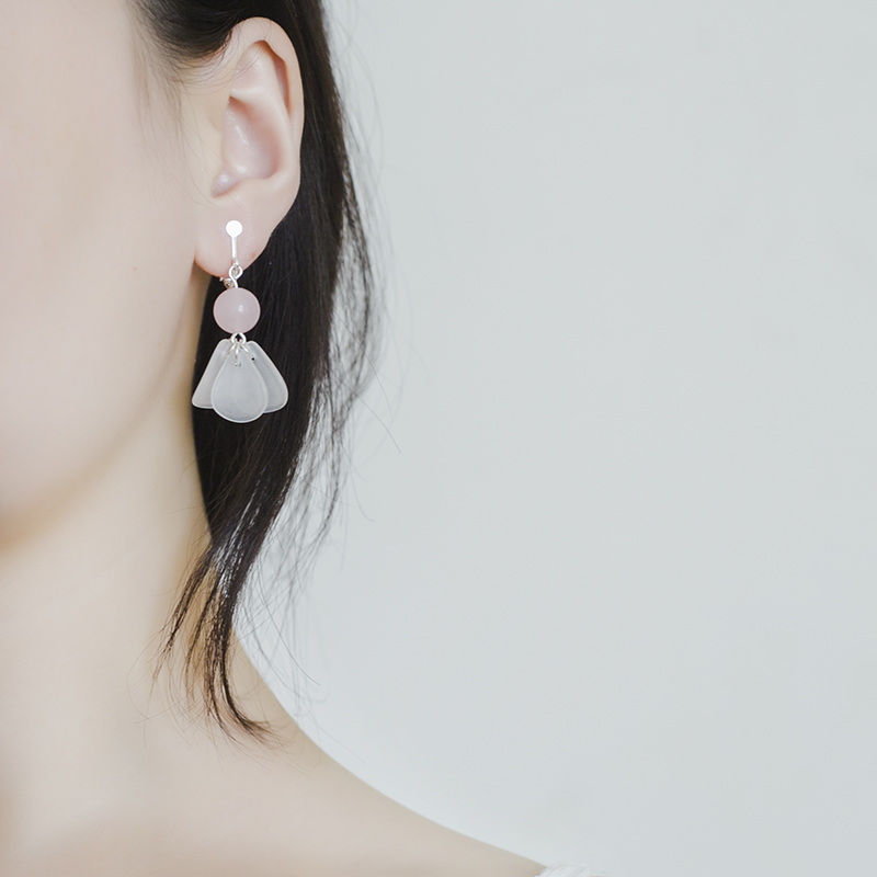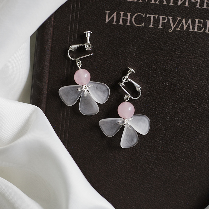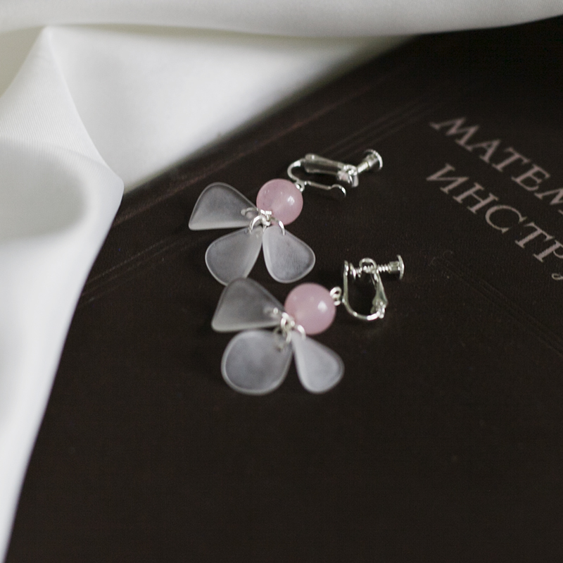 White petals pink crystal earrings small fresh little fairy cute cute earrings earrings ear pin ear clips