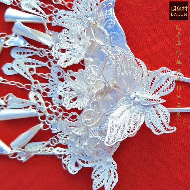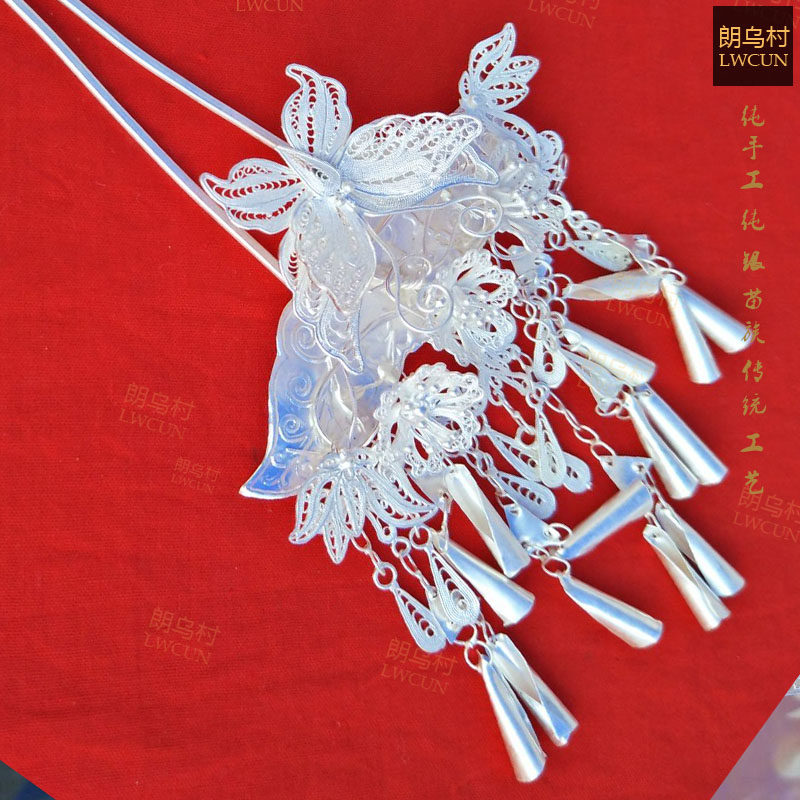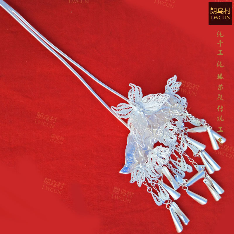 Guizhou impression Langu village silver decoration Miao butterfly head decoration hair Hairpin pure silver S999 ethnic wind drawing handmade custom