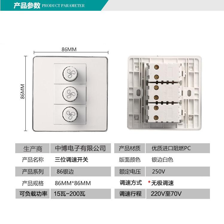 Throttle Switch Ceiling Fan Speed Regulator Endless Speed Change Speed Switch 220V Concealed Switch Ventilator Motor Speed Changer
