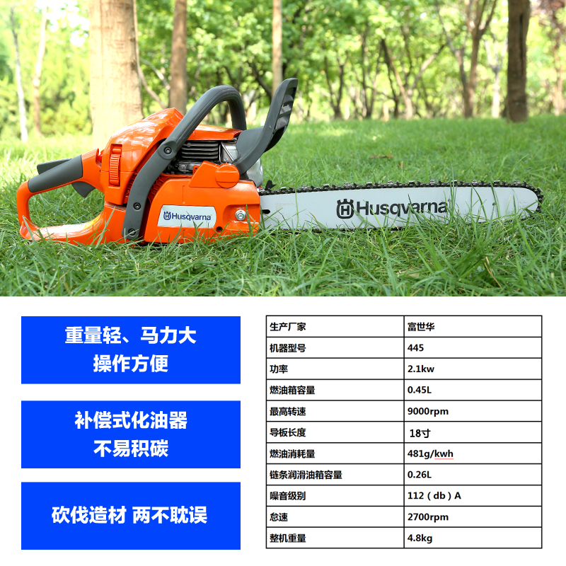 Japan Imports Fushihua 445 Professional Lumbersaw Petrol Saw High Power Saw Tree Saw Tree Chain Saw Chop Sawn