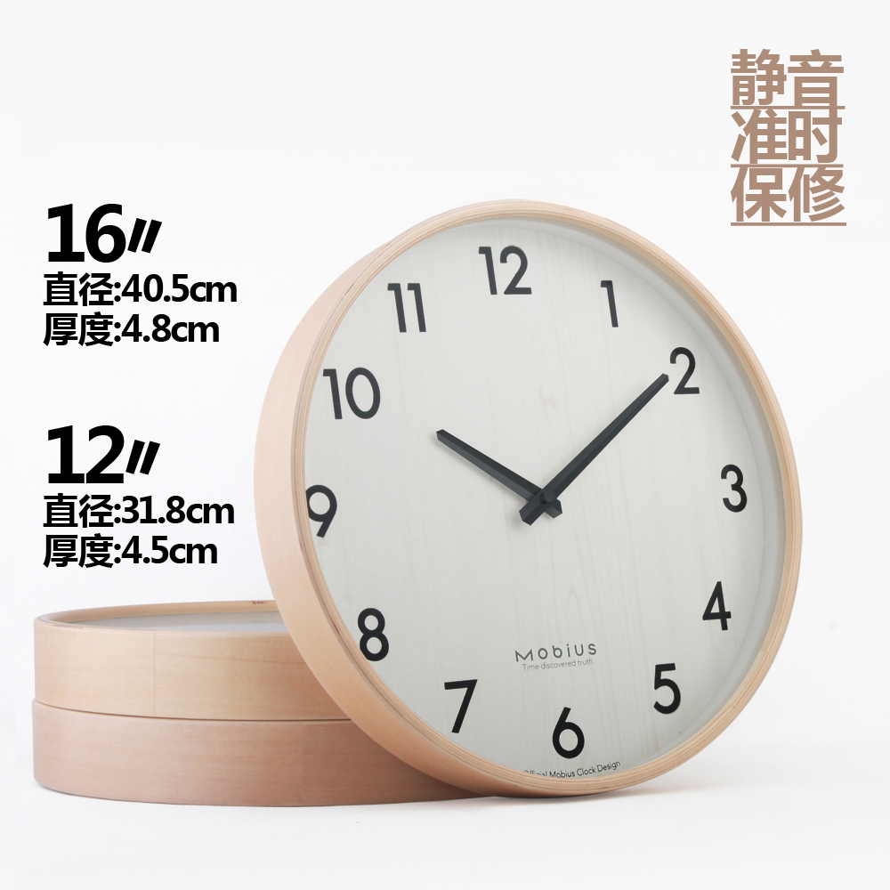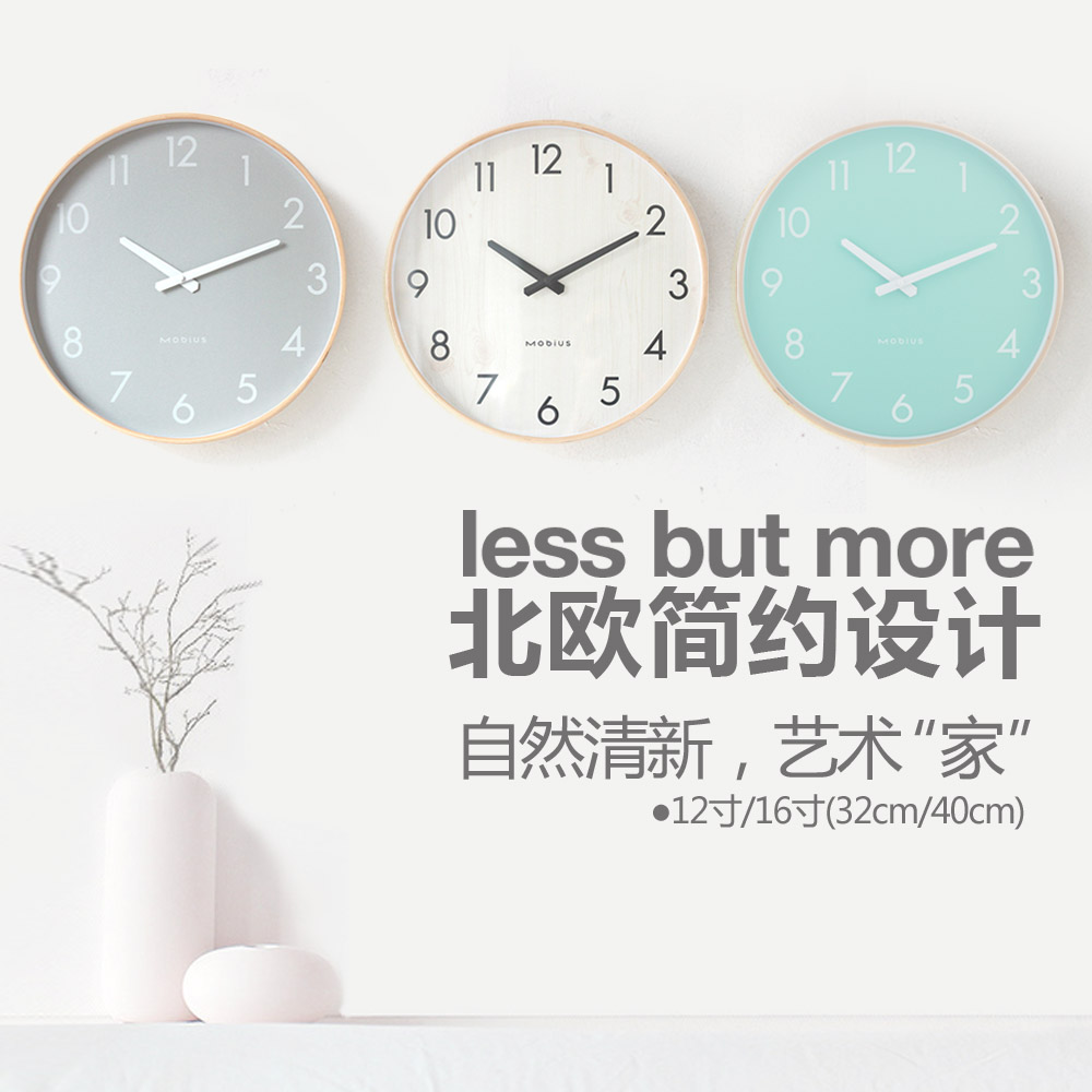 MOBIUS Nordic ins wind wall clock bedroom ultra-quiet wall watch living room solid wood clock art creative clock