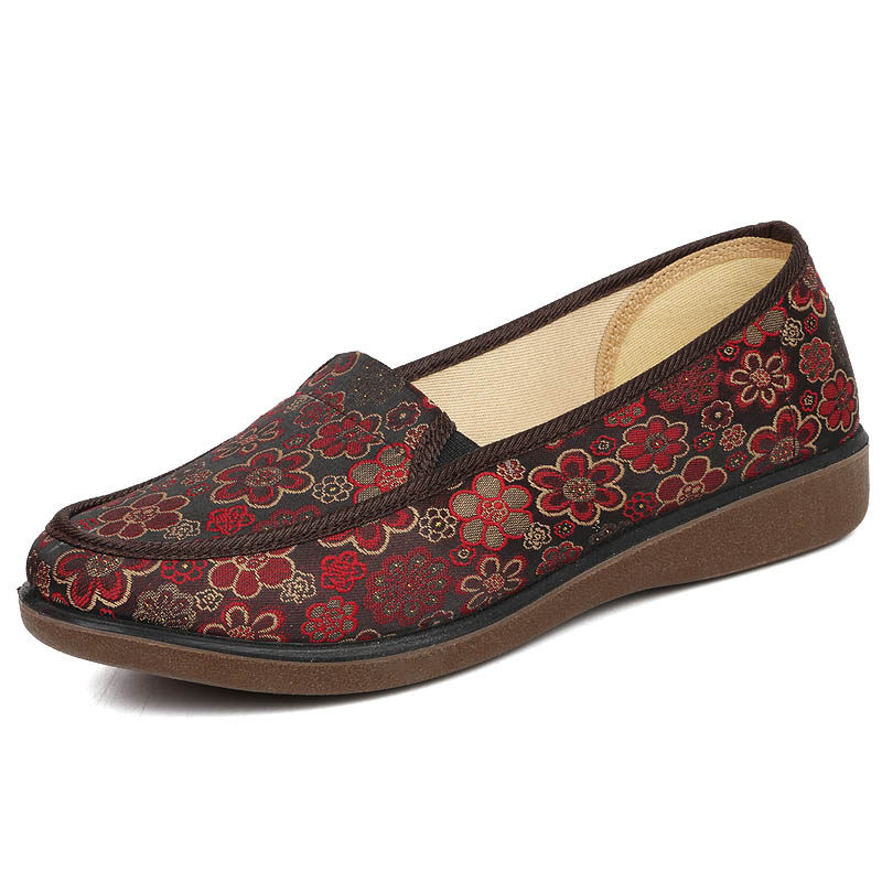 Spring Autumn Old Beijing Cloth Shoes Women Single Shoes Non-slip Soft Bottom Casual Middle Aged Mother Shoes Flat Bottom Grandma Shoes Big Size