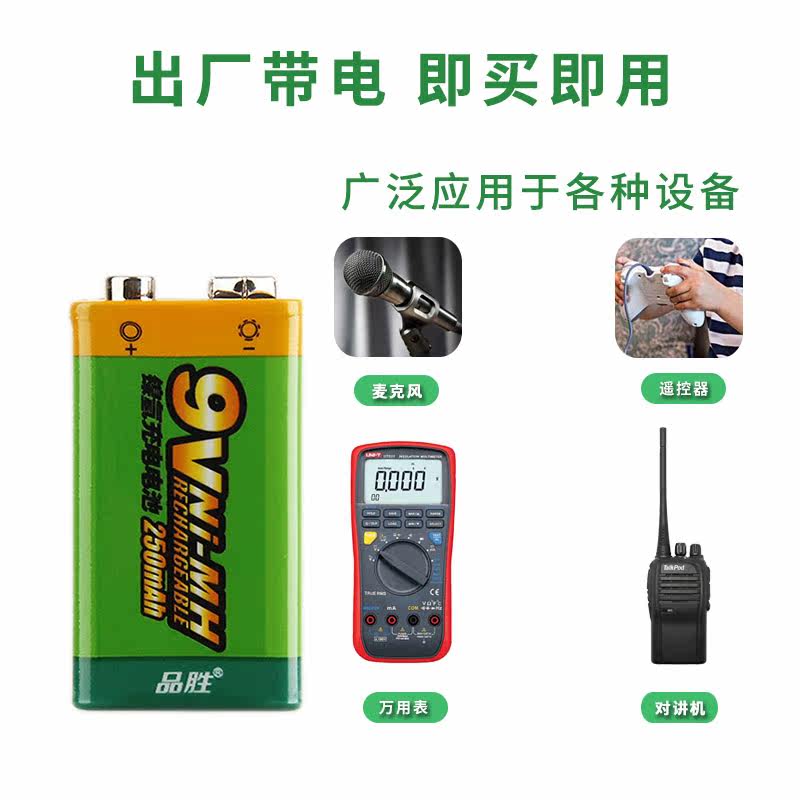 Pint winning 9V rechargeable battery large capacity 6F22 nickel hydrogen square rechargeable battery Wanuses electric meter microphone microphone