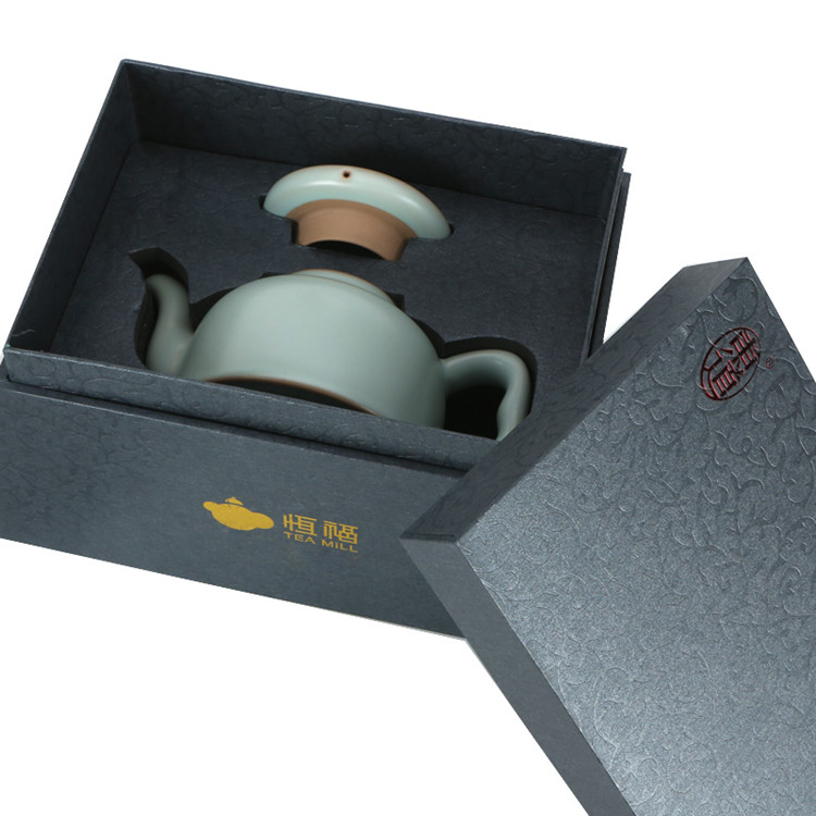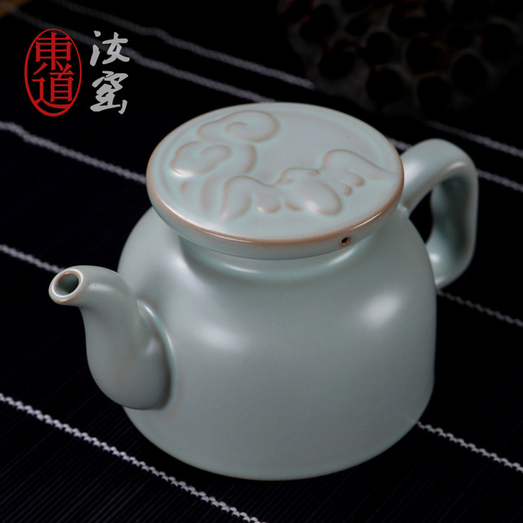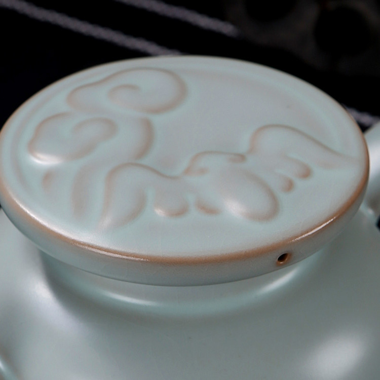 Hengfu tea set host Ru kiln Jingdezhen open piece ceramic filter single pot prayer teapot sky blue prayer pot pad