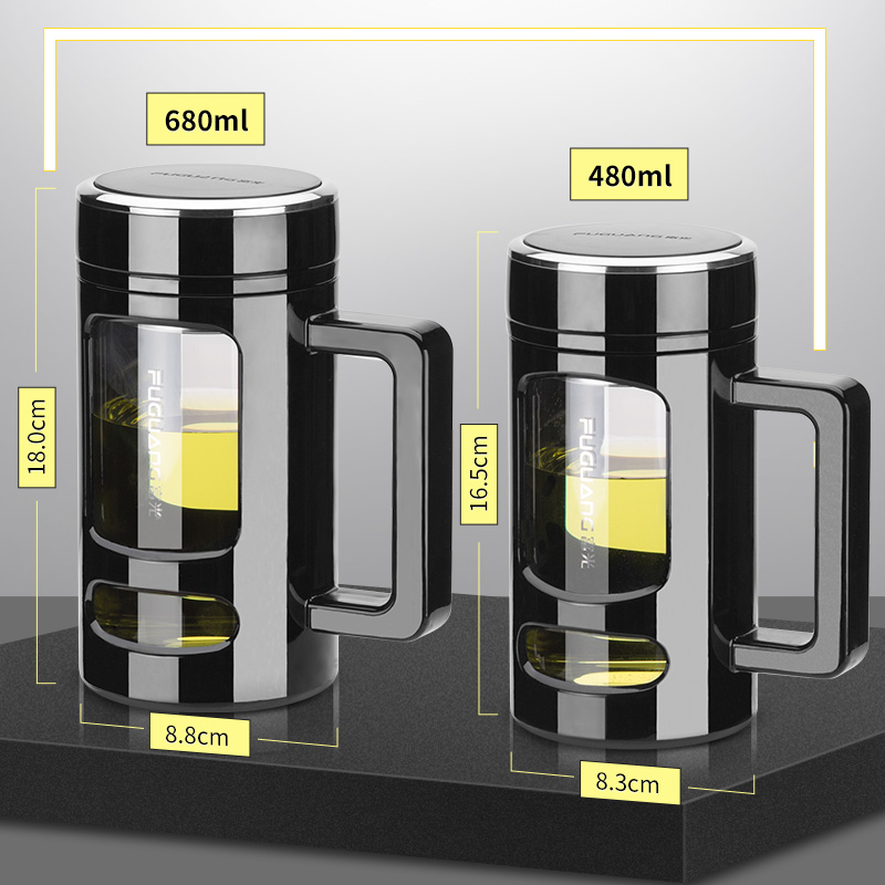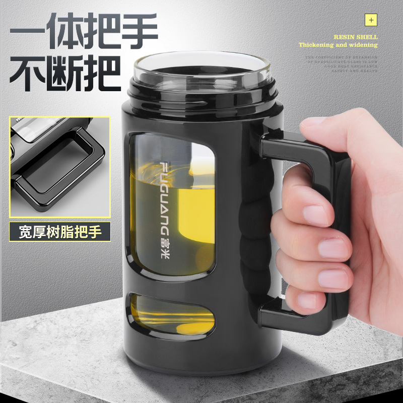 Fuguang glass cups bring men and women portable water glasses office large capacity household heat resistant tea water separation tea cup