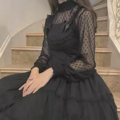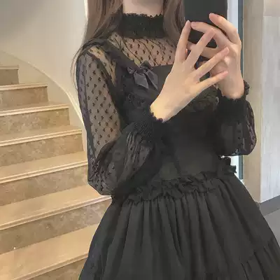 Original love lantern sleeve turtleneck girl lace mesh inner top H