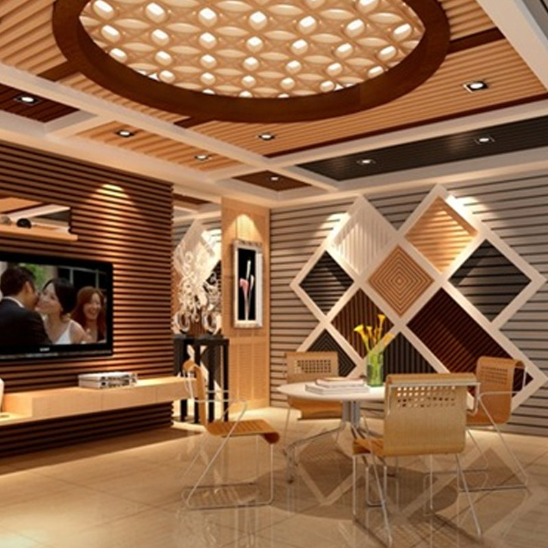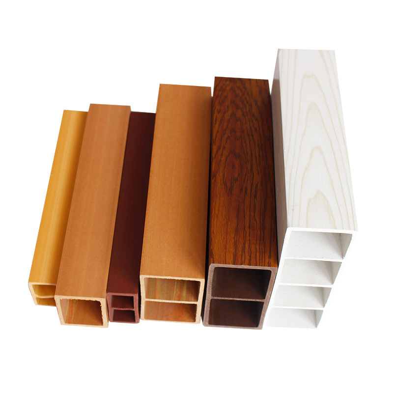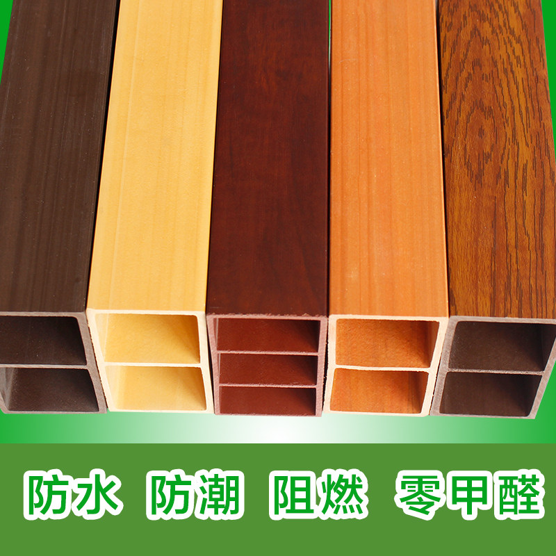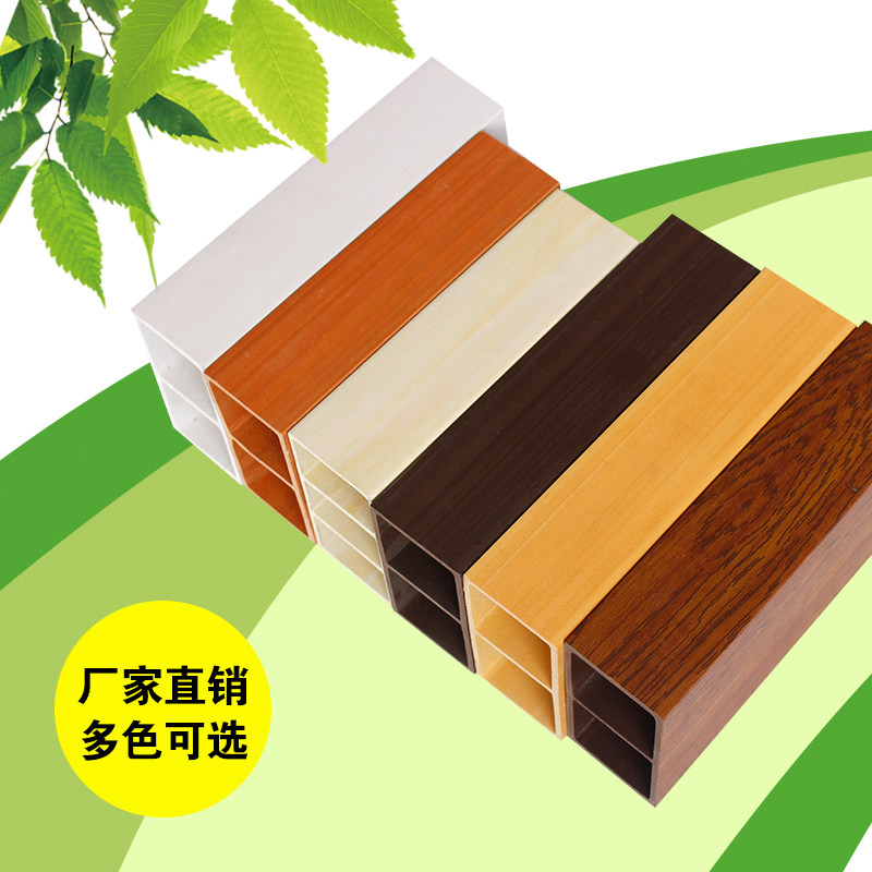 Ecological wood square through hollowed-out partition 100 50 square wood upright post cladding wood grain fake beam suspension hanging type ceiling green wood Xuan guan wall