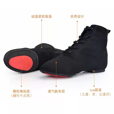 High-barrel jazz shoes Women's soft-soled dance shoes practice shoes Canvas low-top men's heel children's adult black jazz boots