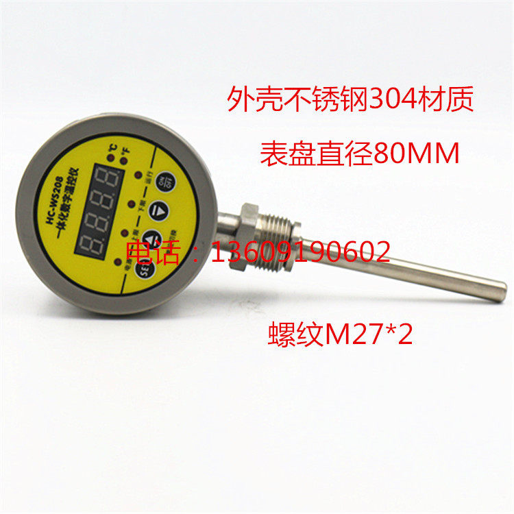 HC-WS208 stainless steel digital display electric junction double metal thermometer upper and lower limit control radial -50-300 degrees